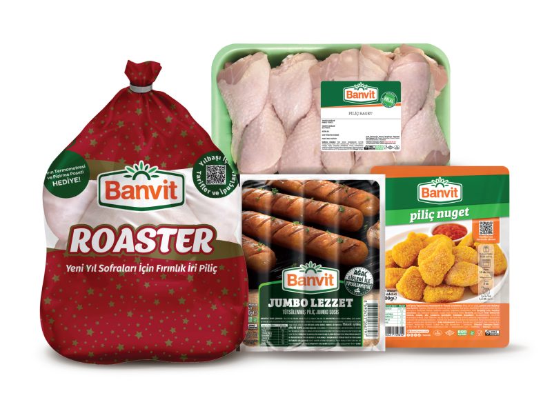 Ana yemek için fırınlık iri piliç olan, fırın termometresi ve pişirme torbası hediyeli Banvit Roaster ürününü tercih edebilirsiniz. Banvit’in yılbaşına özel web sitesinde yer alan videolu tariflerle, hediye fırın termometresi ve pişirme poşetini kullanarak Banvit Roaster’ınızı çok kısa bir sürede ve tam kıvamında pişirip, servise hazır hale getirebilirsiniz. Farklı porsiyonlarda lezzet alternatifleri arayanlar ise Piliç But ve Piliç Baget ile sofralarını kolayca lezzet şölenine çevirebilir.