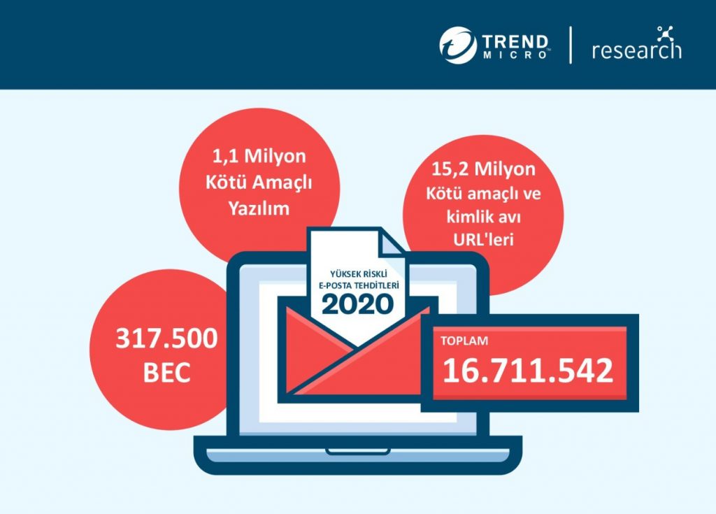 Bulut güvenliğinin lideri Trend Micro, web e-posta sağlayıcılarının yerel güvenlik filtrelerini aşan 16,7 milyon yüksek riskli e-posta tehdidinin engellendiğini açıkladı. Bu rakam, 2019 yılına göre neredeyse üçte bir artış anlamına geliyor.