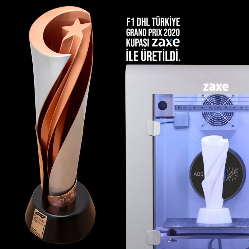 Zaxe Genel Müdürü Emre Akıncı, “Formula 1™ DHL Turkish Grand Prix 2020’nin şampiyonlarına verilecek kupaların yerli ve milli Zaxe 3D yazıcılarımız ile üretilmesinden büyük gurur duyuyoruz” diyor.
