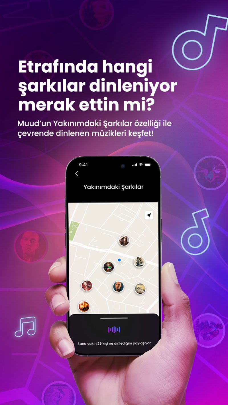 Muud’da geliştirilen yeni Radar özelliğiyle ortamda çalan şarkılar anında tespit edilebiliyor. Yakınımdaki Şarkılar sayesinde bulunulan lokasyondaki diğer müzik tutkunlarının dinledikleri parçalar gerçek zamanlı olarak keşfedilebiliyor. Story özelliğiyle ise eklenen quizler, emoji ile şarkı bulma oyunları, tahmin ve modüller, müzik deneyimine interaktif bir dokunuş katıyor. Geniş, güncel ve zengin müzik arşivi, avantajlı üyelik paketleri ve kişiselleştirilmiş önerilerle Muud, müziği sadece dinletmiyor; yaşatıyor!