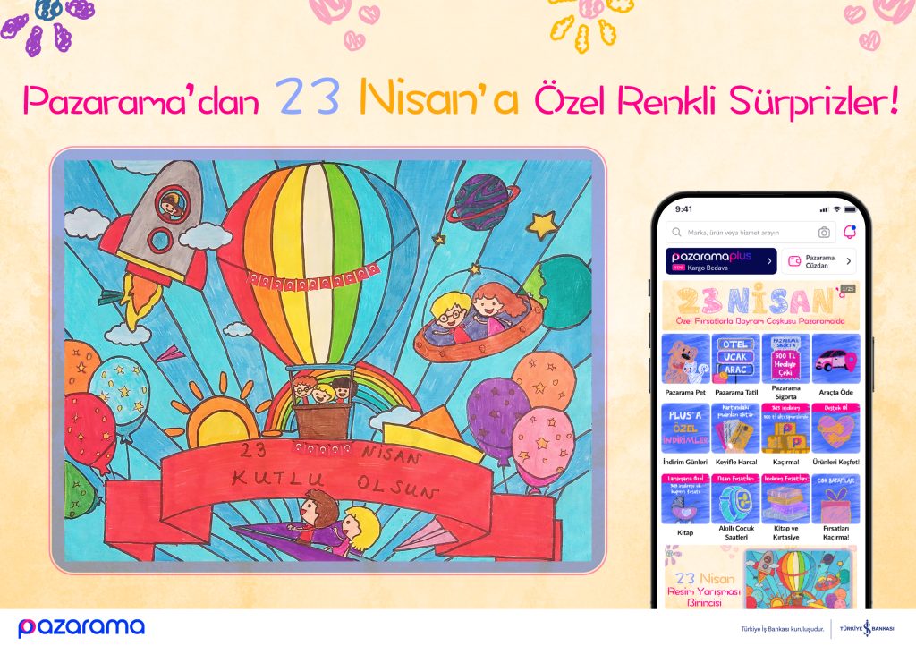 Türkiye İş Bankası’nın e-ticaret sektöründe pazaryeri olarak faaliyet gösteren iştiraki Pazarama, 23 Nisan Ulusal Egemenlik ve Çocuk Bayramı’nı coşku ve çocukların hayal gücüyle kutluyor. Yenilikçi online alışveriş deneyimi sunan Pazarama, bu anlamlı güne özel birbirinden renkli sürprizlerle kullanıcılarının karşısına çıkıyor.