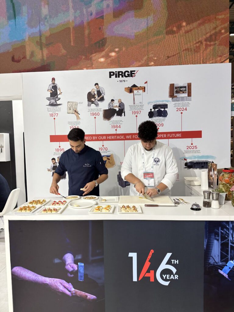 35. kez kapılarını açan, Türkiye ile birlikte yaklaşık 120 ülkeden 30 bini aşkın profesyonelin ziyaret ettiği ZUCHEX 2025’te Pirge’nin standı, yenilikçi ürünleri ve geniş ürün gamı ile katılımcıların yoğun ilgisiyle karşılaştı. Standında ağırladığı yerli ve yabancı misafirlerin yanı sıra Pirge, globaldeki varlığını güçlendirecek iş birliği görüşmeleri de gerçekleştirdi. “Keskin bir deneyime davetlisiniz” teması altında; bıçağın lezzete katkısını anlatmak üzere workshop da düzenleyen Pirge, 11-13 Eylül tarihleri arasında Şef Kemal Şahanlık’ı standında ağırladı. Turşu kurma ve konserve yapımıyla ilgili püf noktaların anlatıldığı workshopta, bıçağın keskinliğinin ve bıçakta kullanılan malzeme kalitesinin gıdanın lezzeti, dayanma süresi gibi faktörlere etkisi ele alındı. Yine bıçak tasarımının çalışma süresi ve kullanıcı konforu üzerine konuşuldu. Şef Kemal Şahanlık ayrıca stant ziyaretçileri için kırmızı soğan turşusu, ekmek üstü lezzetler hazırladı.