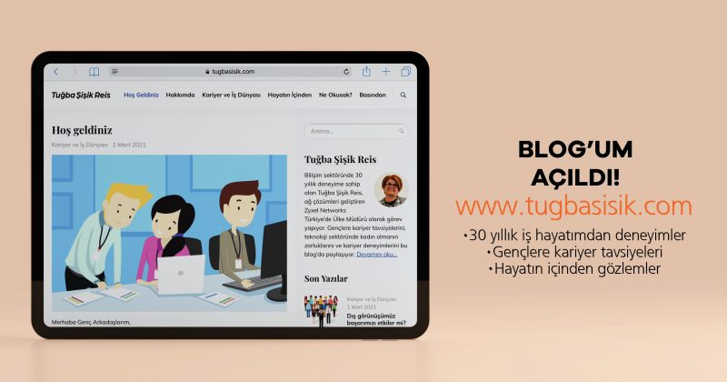 Dünyanın önde gelen teknoloji şirketlerinden Zyxel’in Türkiye Ülke Müdürü Tuğba Şişik Reis, iş hayatına atılacak gençlerle tecrübelerini paylaşmak için bir blog sitesi kurduğunu duyurdu. www.tugbasisik.com adı ile yayına geçen sitede başarılı yönetici Tuğba Şişik Reis, okuma önerilerinden iş hayatının zorluklarına kadar pek çok konuya yazılarıyla değinecek. Tuğba Şişik Reis, blog sitesiyle ilgili şu ifadeleri kullandı: