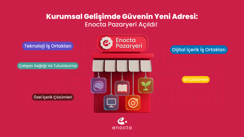 Türkiye’nin önde gelen dijital öğrenme platformu Enocta, kurumsal ihtiyaçlara daha fazla çözüm sağlamak Enocta Pazaryeri’ni kurarak sektörde önemli bir yeniliğe imza attı. Kurumsal gelişimini üst düzeye çıkartmak isteyen firmalar, çalışan sağlığından özel içerik üretimine kadar geniş bir yelpazede 20’den fazla iş ortağının sunduğu hizmetlere tek noktadan ulaşabilecek.