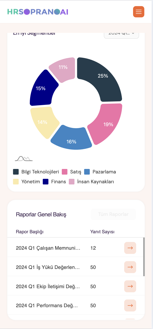 HRSoprano AI, çalışan deneyimini sürekli takip eden bir “organizasyonel kültür sensörü” gibi çalışıyor. Yapay zekâ destekli sohbetler aracılığıyla çalışanların duygu durumu, memnuniyet seviyesi ve gelişim ihtiyaçları gibi konularda sürekli veri toplanıyor. Bu veriler anonimleştirilerek yöneticilere sunuluyor ve anlamlı aksiyonlara dönüştürülüyor.