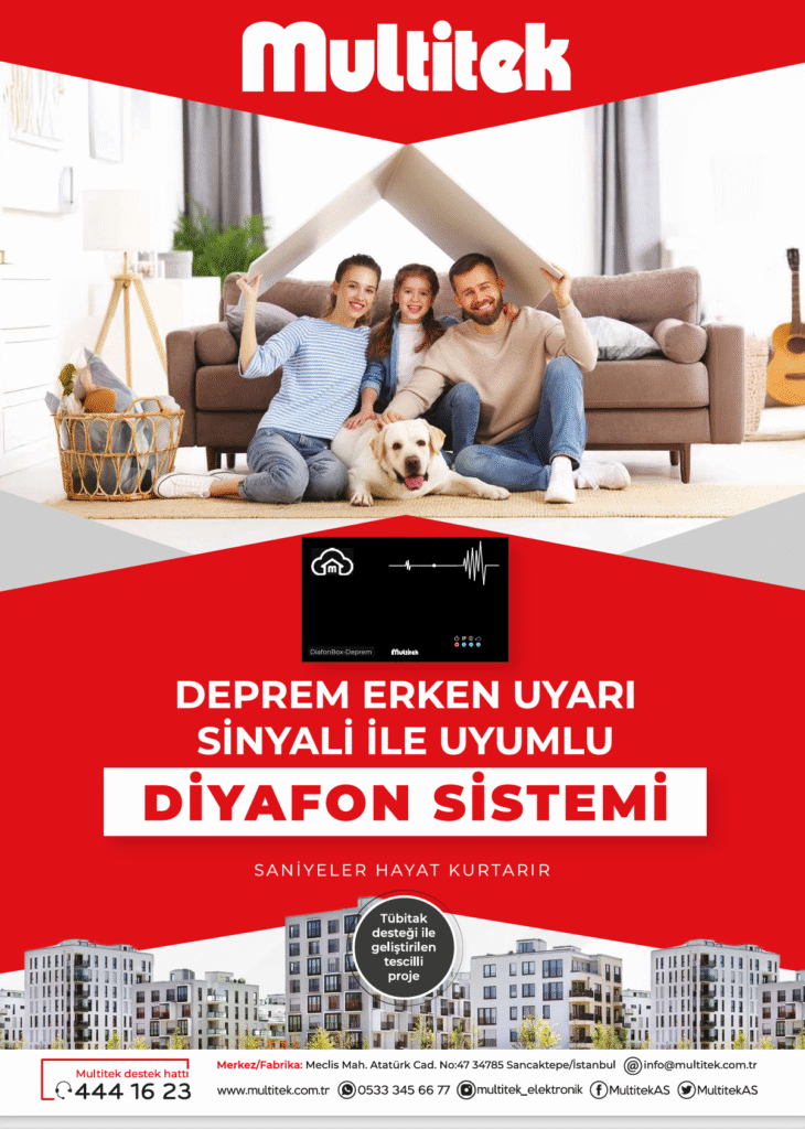 Multitek, TÜBİTAK desteğiyle geliştirdiği Akıllı Diyafonlar sayesinde deprem erken uyarı sinyalini hem dairelerdeki diyafonlara hem de konut sakinlerinin cep telefonlarına ulaştırarak depremi önceden haber veriyor.