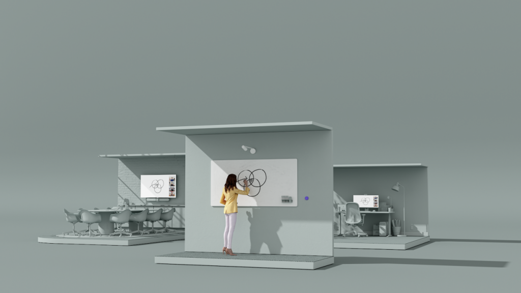 Logitech Scribe, fiziksel beyaz tahtanızı ve ek açıklamalarını Zoom toplantınıza getiren, yapay zekâ destekli bir beyaz tahta kamerasıdır. Scribe’ın kablosuz paylaşım düğmesine basarak toplantılarınızda zahmetsizce bir beyaz tahta oturumu başlatabilirsiniz. Bu fiziksel düğme toplantı odasının herhangi bir yerine yerleştirilebilir ve beyaz tahtanızı anında paylaşmanıza olanak tanır.